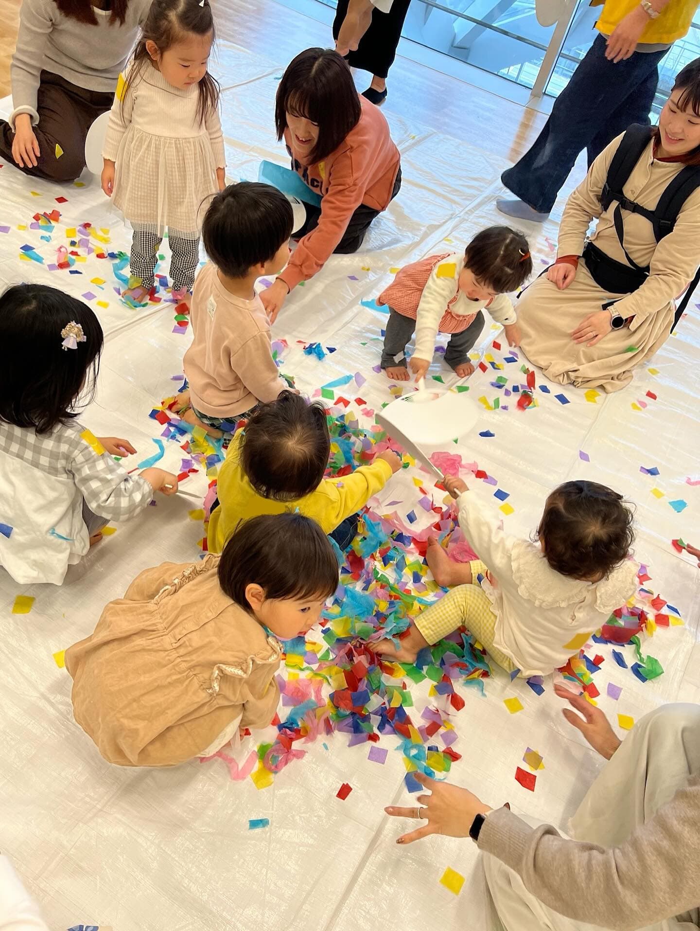 いろいろな色や大きさの紙をあそびの材料とし、